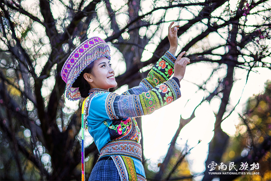 彝族在云南境內(nèi)約471萬人,是省內(nèi)人口最多、分布最廣的少數(shù)民族,主要聚居在金沙江、元江流域和哀牢山、無量山腹地。彝族是一個能歌善舞的民族,民間打歌、跳樂之風(fēng)盛行,大三弦、跌腳舞久負(fù)盛名。火把節(jié)是彝族最具特色的民族節(jié)日。彝族村占地50余畝,三虎浮雕墻與虎頭內(nèi)祖師形象表現(xiàn)了彝族虎鷹文化。太陽歷廣場圖騰柱上有太陽、虎、火和八卦圖形象,周圍環(huán)繞著10個朝向不同的月球造型,外圓周有12生肖石雕。依山而建的“...